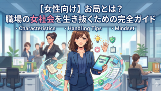 お局の定義 【女性向け】お局とは?職場の女社会を生き抜くための完全ガイド 職場の「お局」とはどんな女性を指す?なぜ女性同士だと関係がこじれるのか、その心理を徹底解説。お局様にターゲットにされる女性、逆に好かれる女性の特徴から、明日から使える賢いコミュニケーション術まで、職場の人間関係を円滑にするヒントが満載です。 2025.10.05 お局の定義