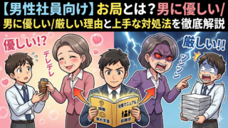 お局の定義 【男性社員向け】お局とは?男に優しい/厳しい理由と上手な対処法を徹底解説 職場の「お局様」はなぜ男にだけ優しい、あるいは厳しい?その理由と心理を男性社員向けに徹底解説。男性版お局「老中」との違いや、タイプ別の賢い付き合い方、ひいきされた時の注意点まで、職場の人間関係を乗り切るヒントが満載です。 2025.10.18 お局の定義